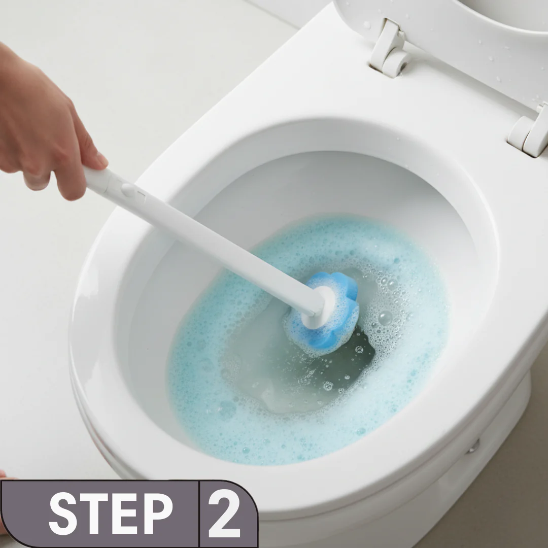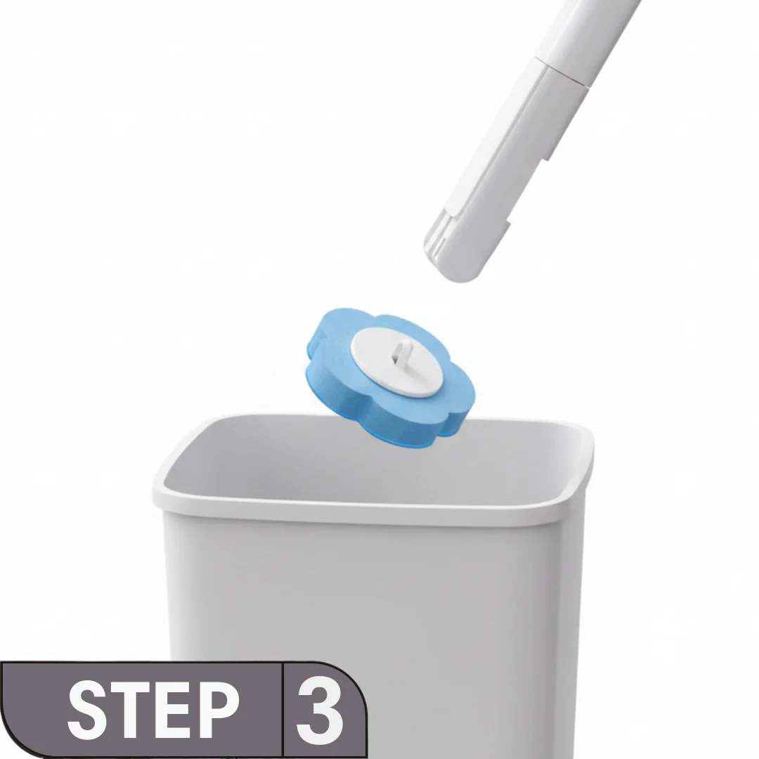 ToiletScrub uses a simple but powerful cleaning system designed to fix everything a normal brush can’t. Each cleaning session starts with a fresh sterile head pre-loaded with a formula that melts grime instantly and reaches deep under the rim where brushes fail. When you're done, one press drops the used pad straight into the trash — your hands stay clean, and no bacteria ever builds up. It’s the fastest, most hygienic way to keep your bathroom spotless.